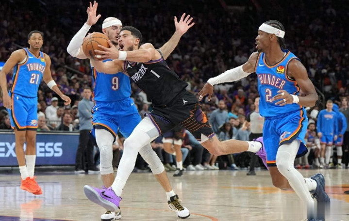 4月28日NBA季后赛继续进行,雷霆与太阳的系列赛来到G4,前三场比赛打完雷霆占据绝对的实力优势目前大比分已经3-0领先。本场比赛杰伦威继续伤停,雷霆这边多特、霍姆格伦、哈尔滕施泰因、米切尔、亚历山大先发,太阳这边马威、古德温还是打不了,格林、狄龙、伊戈达罗、布克、吉莱斯皮先发迎战。此役最大的看点在于雷霆队是以何种态度打球,如果雷霆下定决心要结束系列赛,太阳恐怕很难抵挡雷霆的攻势。季后赛至今,雷霆防守效率联盟第二,进攻效率联盟第一,净效率断档联盟第一,整体实力太强了。对于太阳来说想要延续系列赛需要每个位置的球员打出超水平发挥,尤其是当家球星布克这个点。前三场比赛他场均只能得到22分,进攻端这样的输出显然不够,能否完成单场爆发带队延续系列赛值得期待。话不多说,让我们一起进入比赛!